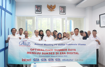 JAKARTA, Selasa 21 Januari 2025. Bertempat di Gedung ASOHI Jagakarsa, Annual Meeting PT Gallus Indonesia Utama diselenggarakan dengan mengambil tema “Optimalisasi Sumber Daya Menuju Sukses di Era Digital”. Direktur Utama PT Gallus, Ir Bambang Suharno, mengawali acara dengan membahas situasi bisnis di 2024, dimana kondisi ekonomi peternakan yang belum membaik dan cenderung stagnan menjadi tantangan bagi perusahaan dalam menapaki bisnis.